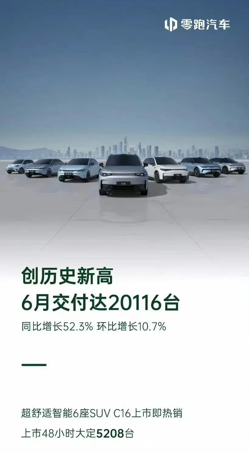 零跑汽车于6月份成功交付20116辆汽车。近年来,零跑已成为价格上的主导者。自研能力在降低成本方面发挥了重要作用。目前,零跑致力于深耕15-20万价位的市场,并希望通过其产品让人们首先想到选择零跑这个品牌。未来,即将上市的B系列车型将进一步下探到10-15万级市场,有望取代埃安成为这一价位级别家用电动汽车首选品牌。