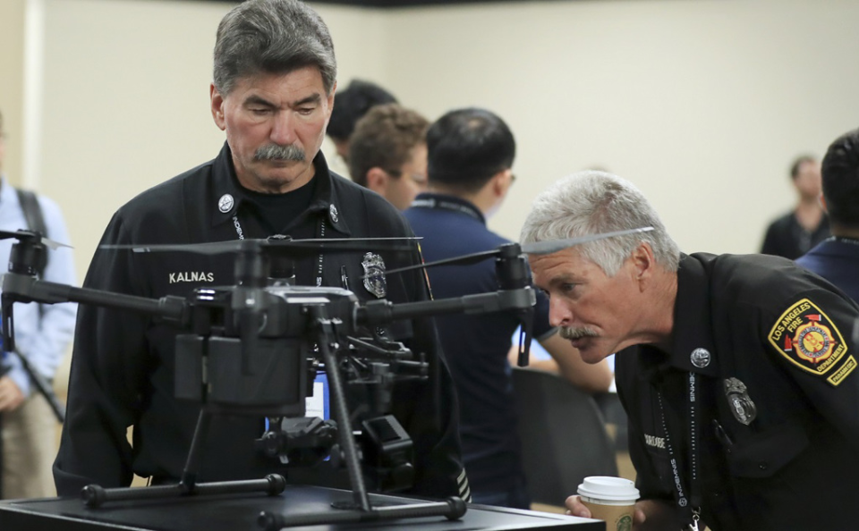 大疆无人机在美国洛杉矶展出。图源:新华社