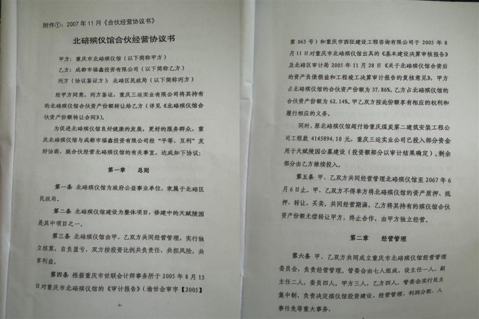 成都福鑫公司与北碚殡仪馆签订的合伙经营协议 (图源:受访者)