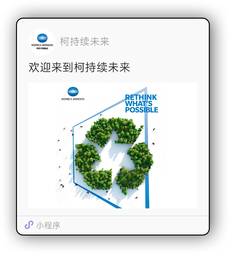 以绿色低碳为核心发展目标,聚焦绿色循环可持续发展与创新环保公益活动,全域增值数字化整合服务商——柯尼卡美能达办公系统(中国)有限公司(以下简称“柯尼卡美能达中国”)于近日正式上线“柯”持续未来小程序(以下简称“小程序”)。