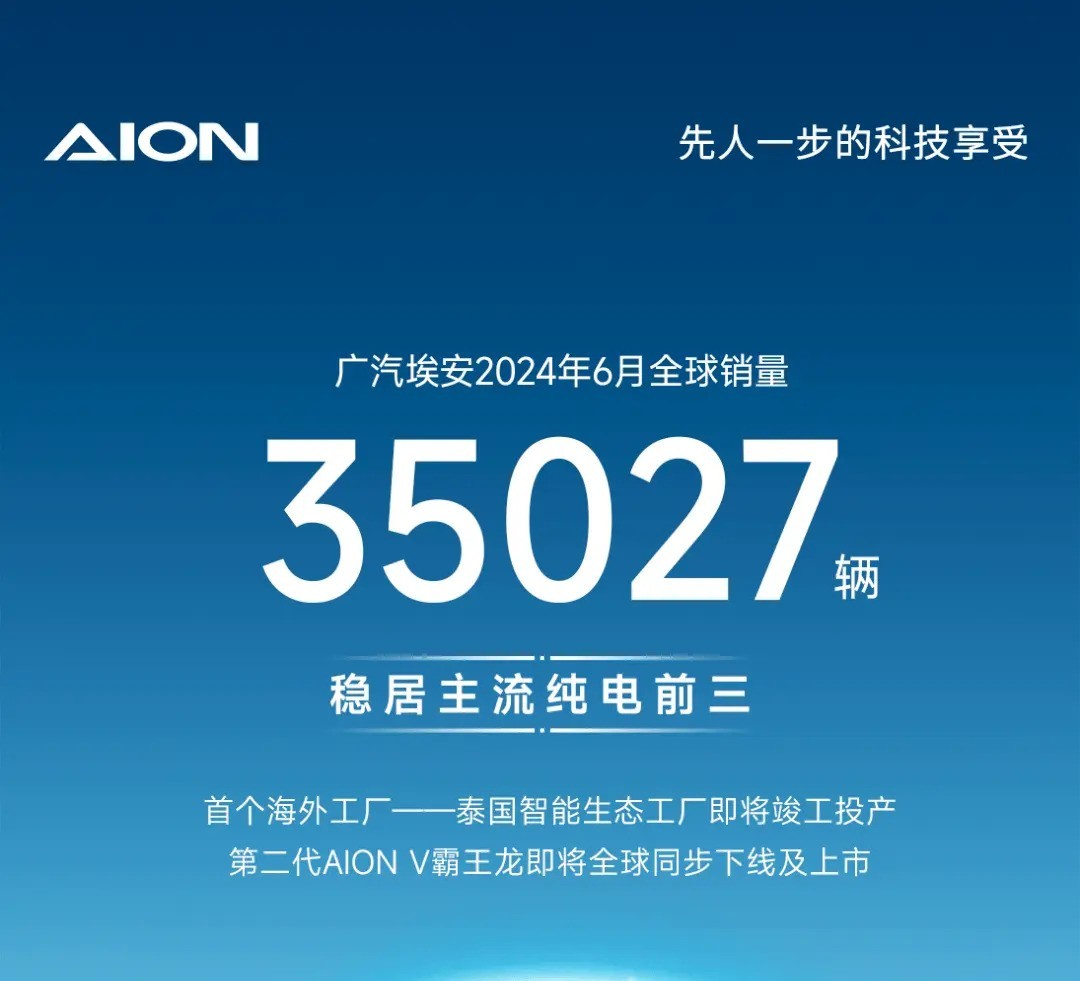 广汽埃安于7月1日公布了其6月份的销售数据。数据显示,该品牌在6月份全球总销量为35,027辆,相比于上个月下降了12.6%,同时相较于去年同期也下降了22.2%。此外,根据最新公布的统计数据,广汽埃安今年上半年总销量达到了142,339辆,而相比去年上半年同期的销售业绩则下滑了32%。