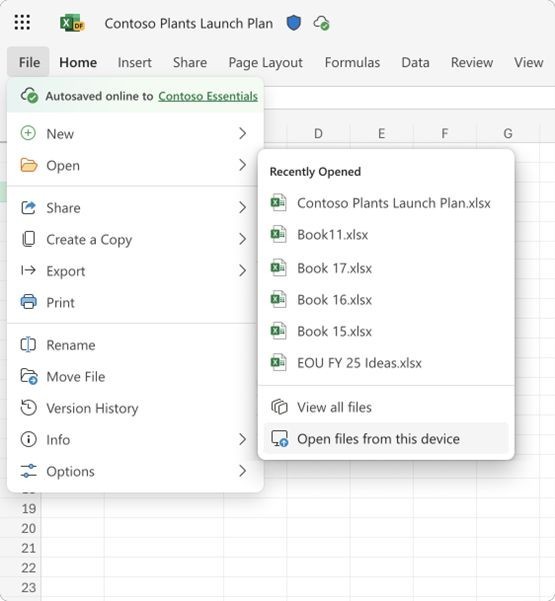 为了方便用户使用本地文件,文件菜单中增加了一个“从该设备打开文件”的选项。这样用户就可以将本地文件上传至OneDrive,并直接通过浏览器访问。