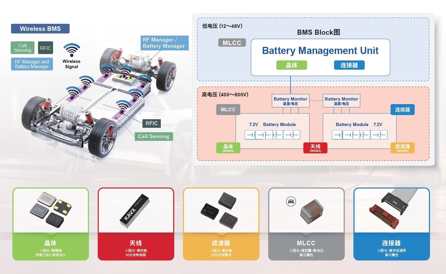 跟随时代潮流,顺应市场发展,不断加速创新。京瓷集团以不断升级的技术,凭借具备高可靠性和高安全性的高性能产品,深受市场关注和认可。此次展会,京瓷将重点展示包括在中国市场中不断扩大的NEV在内的车载市场中的产品应用及解决方案,特别是面向下一代电动汽车主流电压平台——800V高压平台的产品应用。