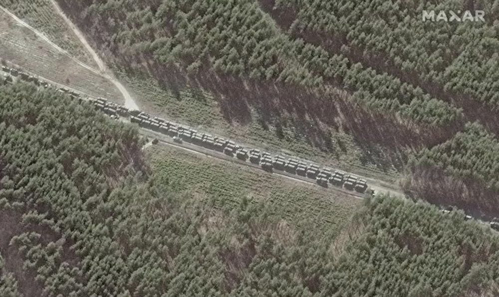 卫星地图显示,2022年战争爆发初期,大批俄军车辆停在基辅郊外。