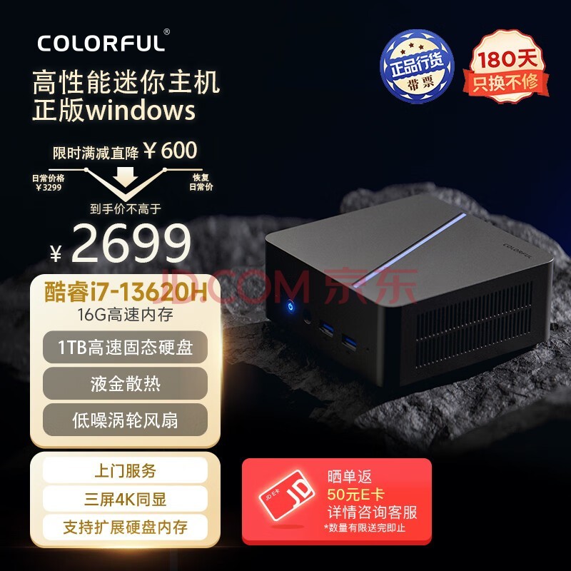 七彩虹(Colorful)高性能迷你主机商务办公台式电脑口袋小主机(酷睿13代i7-13620H 16G 1TB高速固态硬盘 蓝牙WIFI 6)