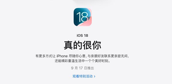 苹果公司宣布,将于9月17日正式推出iOS 18和iPadOS 18的正式版更新,为全球的iPhone和iPad用户带来一系列令人兴奋的新功能和改进。此次更新不仅增强了设备的个性化与实用性,还进一步优化了用户日常使用的便捷性。