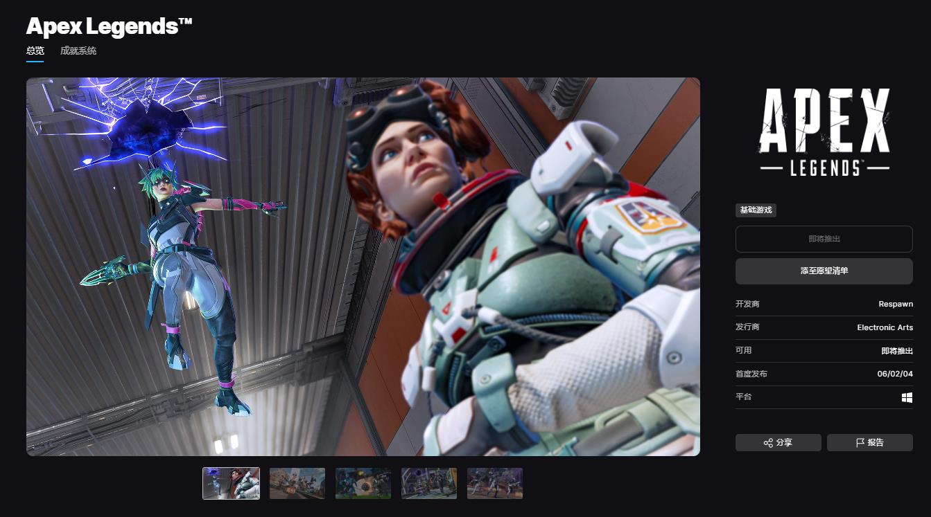 7月30日,《Apex英雄》游戏官方宣布,该游戏将于8月6日在Epic游戏商店上线(包含中国区),现在已经可以在Epic商店的页面上看到相关的信息。同时,玩家们还可以将这款游戏加入到自己的愿望清单中,在限定的时间内使用Epic商店版本的《Apex英雄》进行游玩,并且还能免费获得英雄“导线管”。