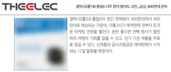根据Merichi证券报道,三星公司预计在今年年底前准备生产800万部Z Fold 6和Flip 6手机。尽管如此,基本生产量仍被保守估计为800万台。同时,市场研究公司Counterpoint Research预测,Z Fold 6和Flip 6的销量将比之前的机型增长30%,接近900万台。