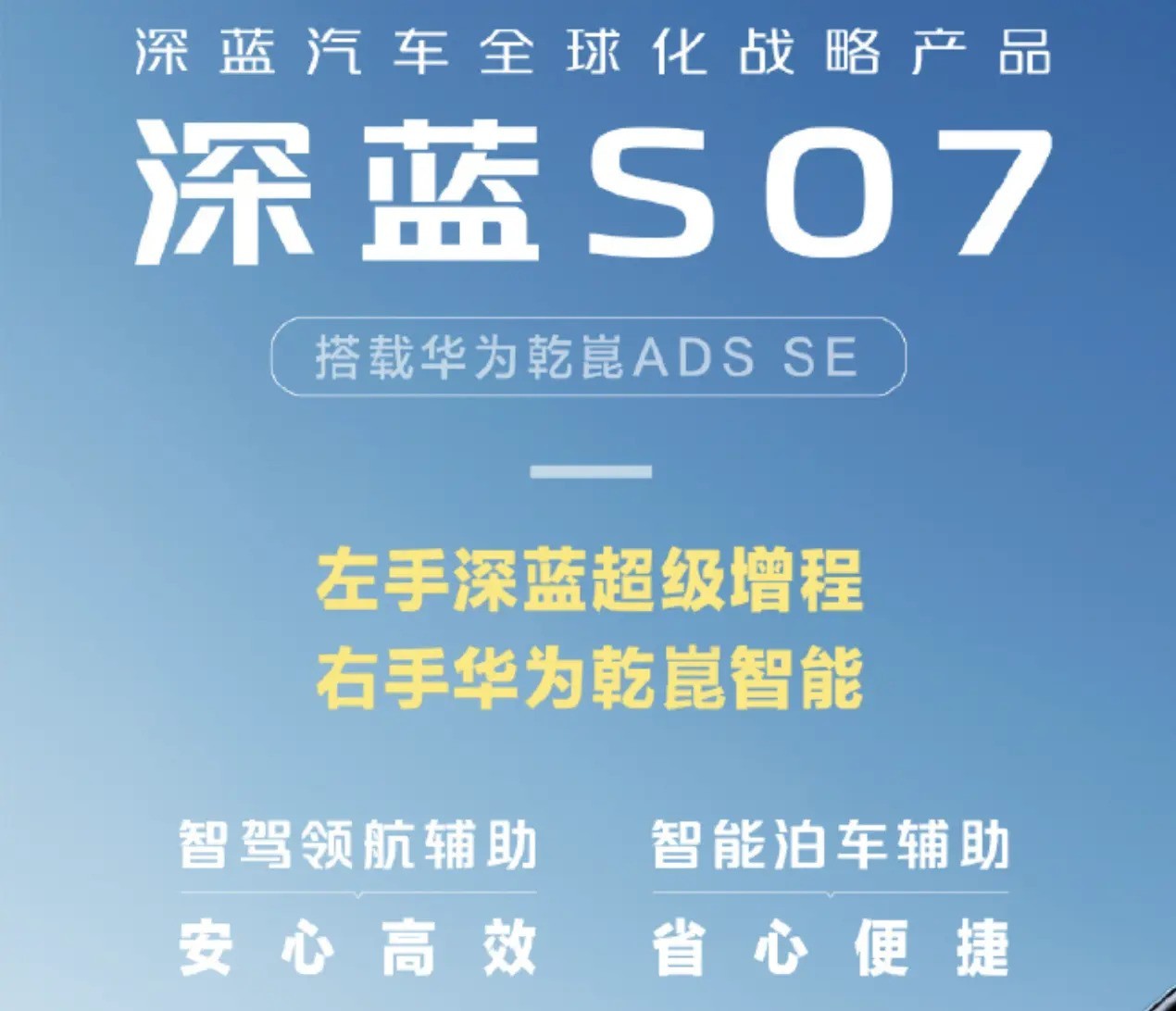 长安深蓝汽车近日发布了一张预热海报,宣布其全新车型深蓝S07即将亮相。该车定位于“科技新主流中型 SUV”,搭载了华为乾崑ADS SE智能驾驶领航辅助和智能泊车辅助功能。此外,新车还配备了“深蓝超级增程”技术。