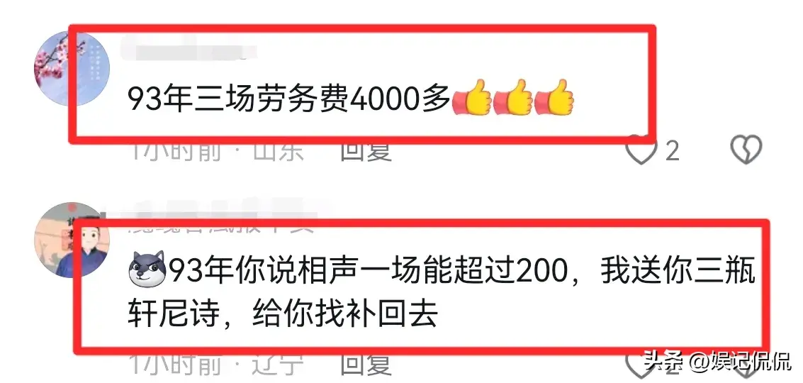 不过,也有网友对谢雷的说法表示存疑,93年的演出费就有3000多元,还是一个不算出名的小角色,那时候的干部也才几百元,这工资水平,实在让人难以信服。