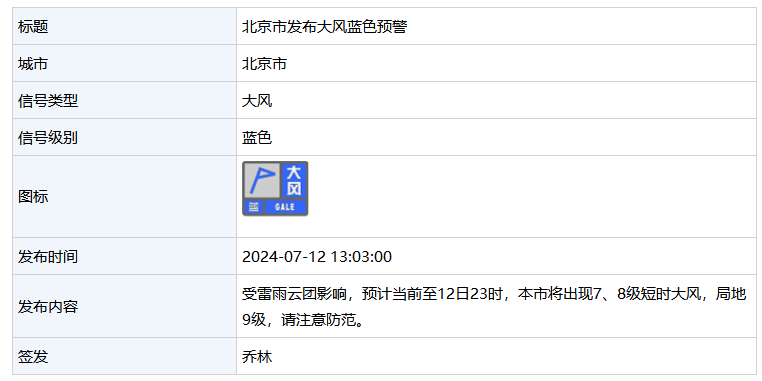 大风蓝色预警