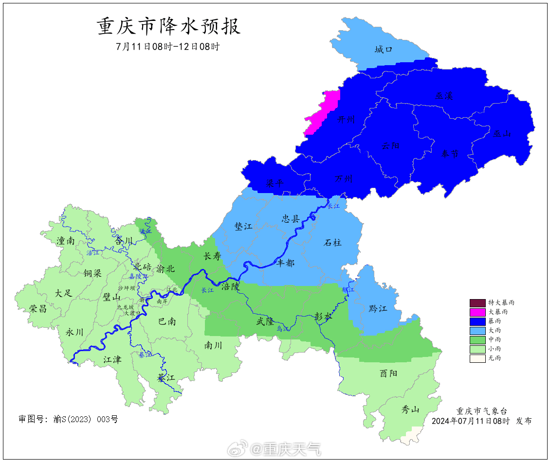 降水频繁:受季风系统和天气系统的影响,重庆地区可能会出现频繁的降水过程。特别是进入7月中下旬后,降水可能会更加集中和频繁。