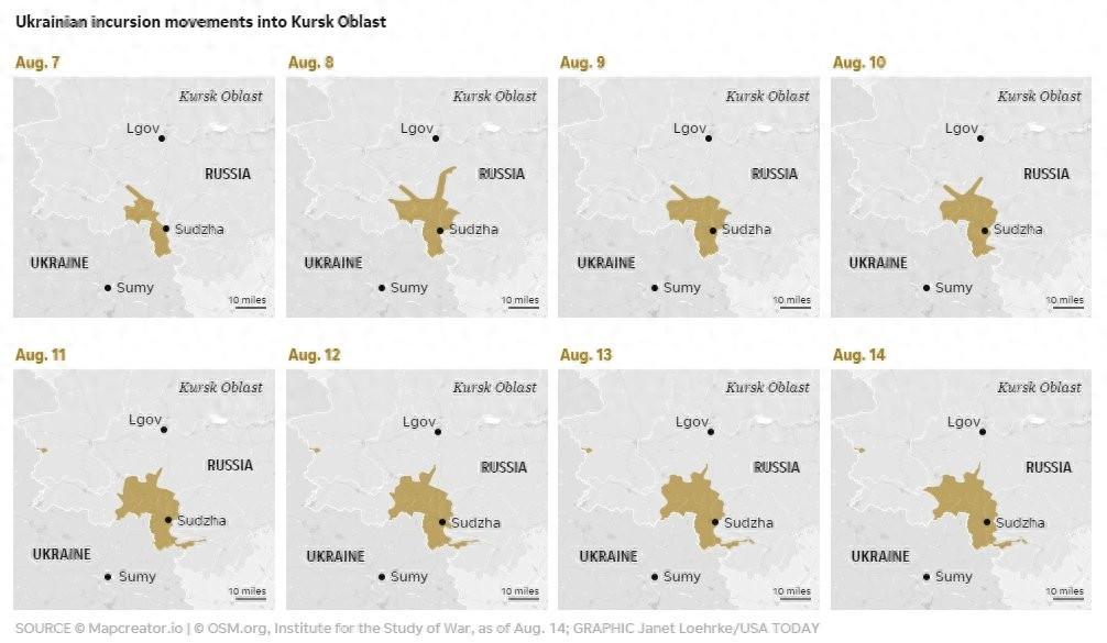 乌克兰总统顾问波多利亚克8月16日在通信平台Telegram发文说:“我们需要对俄罗斯造成重大战术上的失败……在库尔斯克地区,我们清楚地看到军事工具是如何客观地用来说服俄罗斯联邦进入公平谈判进程。”波多利亚克此前还承认,基辅曾与美英等讨论过乌军攻击库尔斯克的计划。