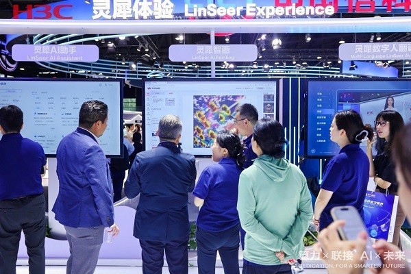 在MWC上海展会现场,新华三还展出了由AIGC灵犀一体机驱动的AIGC数字人,为观众带来沉浸式的AI体验。数字人不仅能够模拟人类语言交流,还能理解复杂情境,进行智慧交互,目前已广泛应用于政务、客服、教育等多个领域。