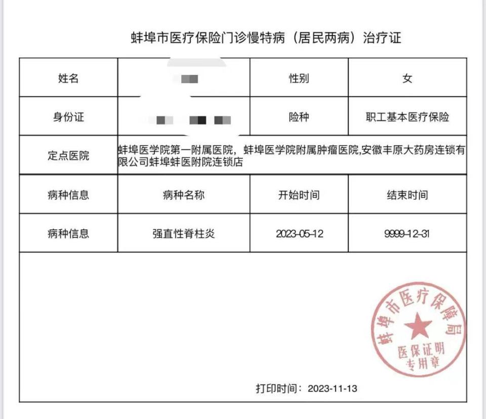 小夏的慢特病治疗证。