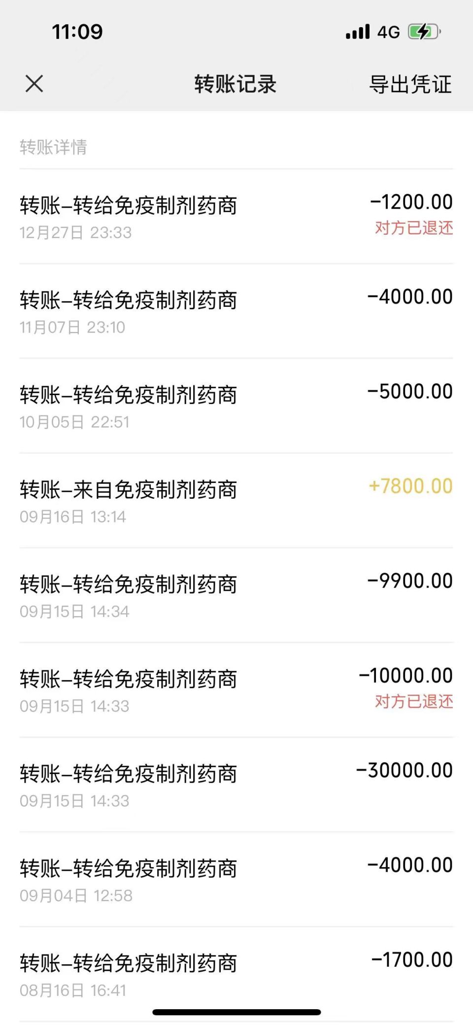 小夏在药商处买药的部分转账截图