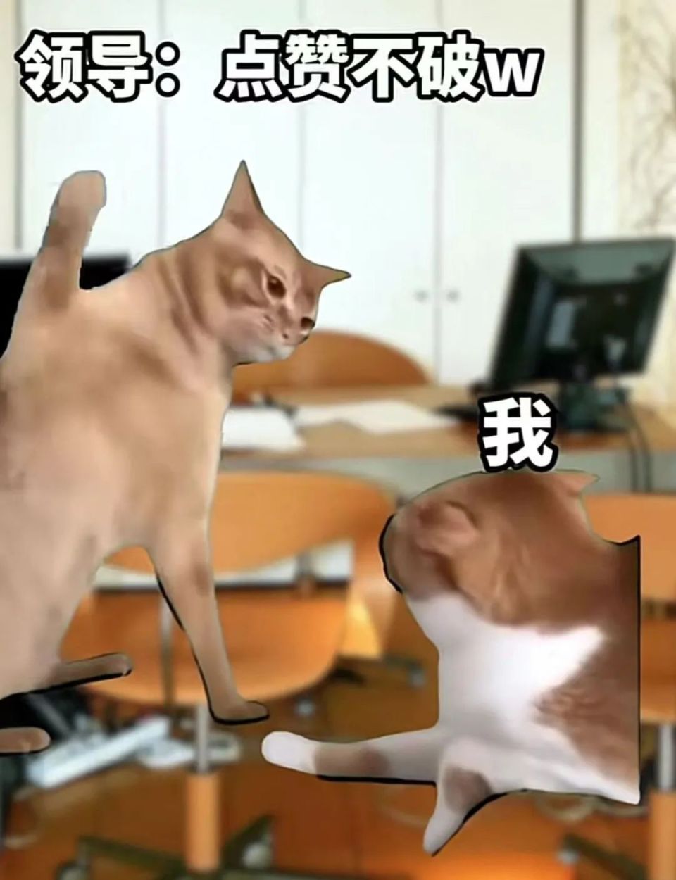 比如经典的“质问猫和委屈猫?cp”,左边的“质问猫”,可以代入生气的女朋友、质疑的领导等等一系列的身份,而右边这只叫起来好像有人欠她八百个罐罐的“委屈猫”,也可以让我们轻松代入每一个委屈的场景——而且,绝对不会有误解。