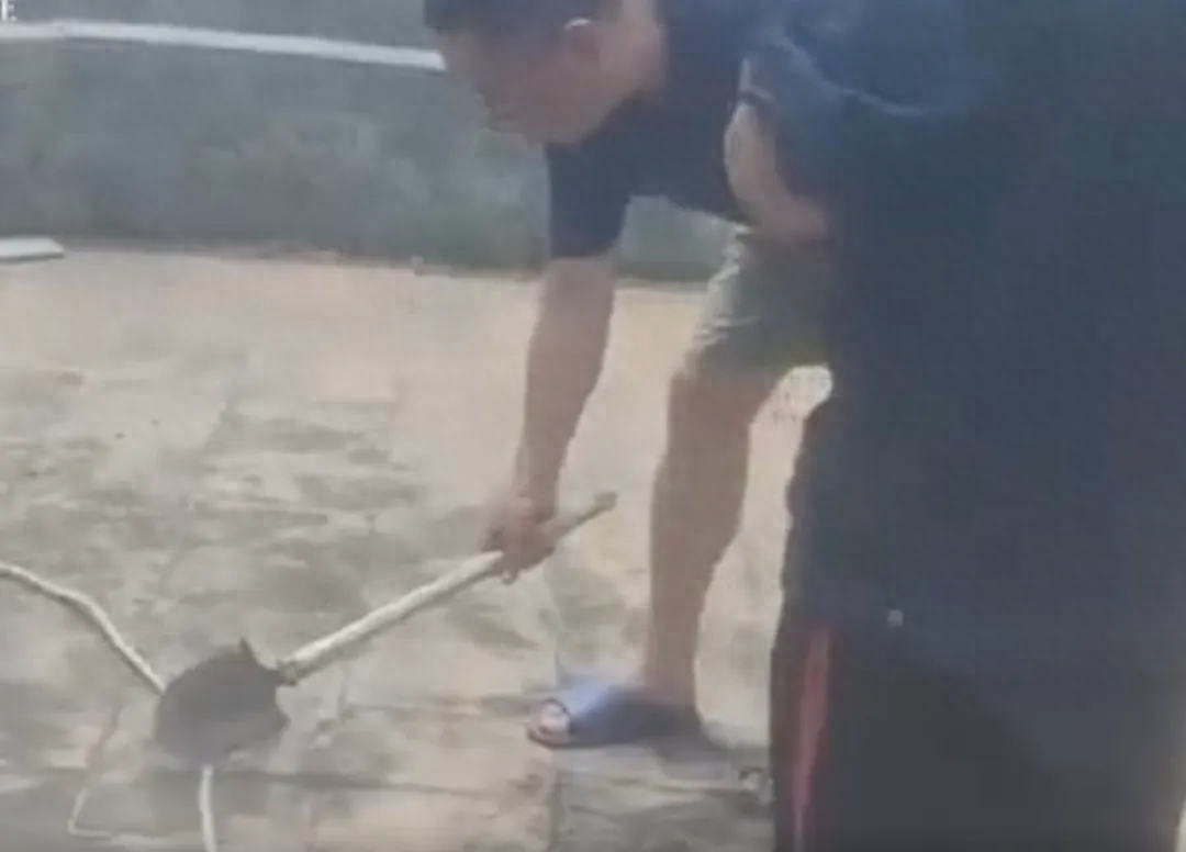 该业主直接用铲子将安全绳的副绳砍成三段,旁边有四名工人挂着在作业,楼栋有32层110米高,好在有安全员在楼顶看守及时阻拦,工人们都没事。