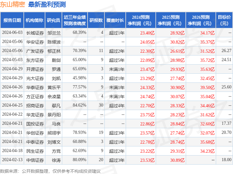 以下是详细的盈利预测信息: