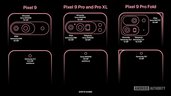 除了超广角传感器外,Pixel 9 Pro和Pixel 9 Pro XL所采用的相机系统与去年发布的Pixel 8 Pro和Pixel 8 Pro XL相同。在这个系统中,索尼IMX858传感器几乎承担了除主摄以外的所有任务,并且还搭载了自动对焦功能的前置摄像头。这使得 Pixel 9 在自拍时更加清晰、稳定。