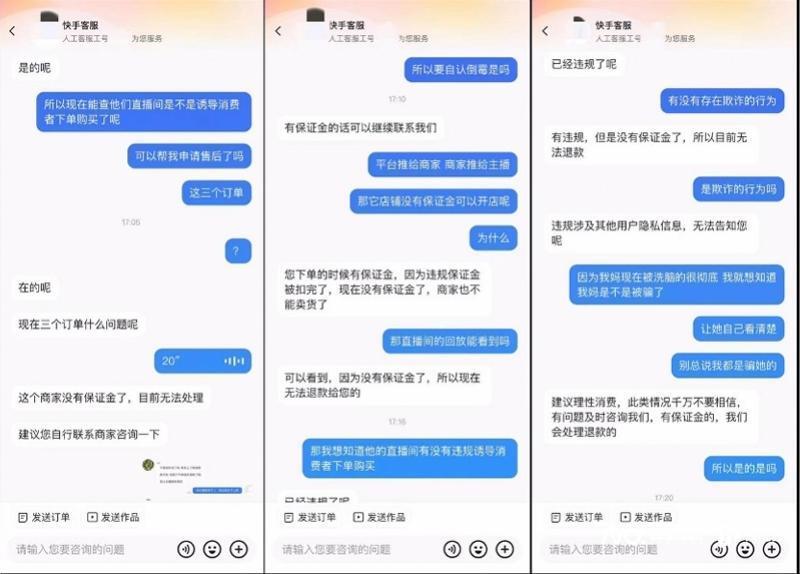 另一位维权者小毛则告诉南都记者,她的母亲曾经沉迷于短视频直播平台的这类直播间,而且购买了不少“工艺品”,但因为主播宣称“退货会有大灾难危害生命”,她的母亲不敢退款。小毛好不容易说服母亲退款,也只退回了部分款项,“如果没有保证金保障,平台也拿商家没有办法”。