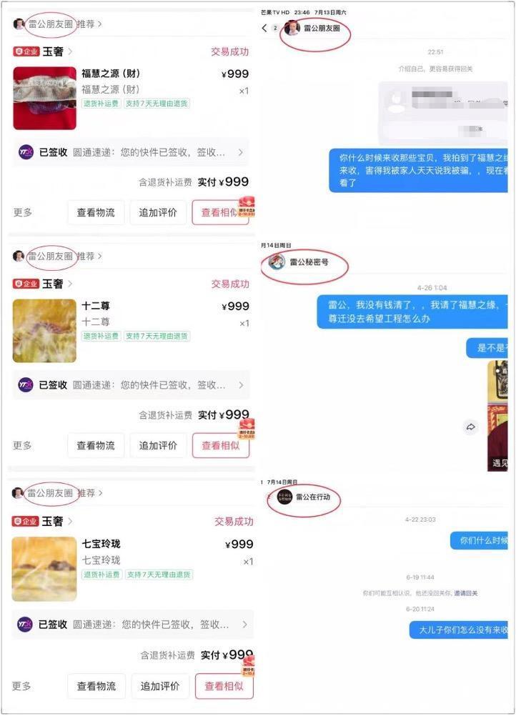 小月的母亲购买的产品包括999元的“福慧之源”“七宝玲珑”“十二尊”等工艺品。在被小月发现后,她的母亲给主播留言,“你什么时候来收那些宝贝,我拍到了福慧之缘,你们又不来收,害得我被家人天天说我被骗”。