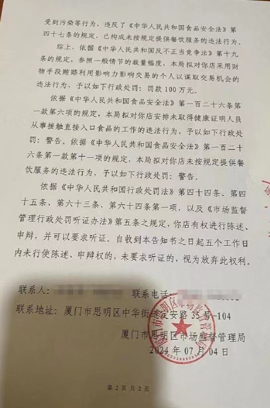 思明区市场监督管理局工作人员向澎湃新闻证实了确实存在上述告知书。他表示,“这是行政处罚告知书,还不是决定书。目前案子还未办结,还处于听证阶段。”对于更多的案件情况,该工作人员表示,商家有申诉的权利,但案件具体情况不方便细说。