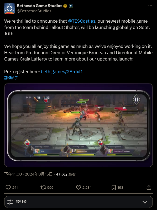 近日,贝塞斯达游戏工作室宣布,《上古卷轴:城堡》手游将于9月10日全球发行。该游戏由《辐射避难所》团队开发。