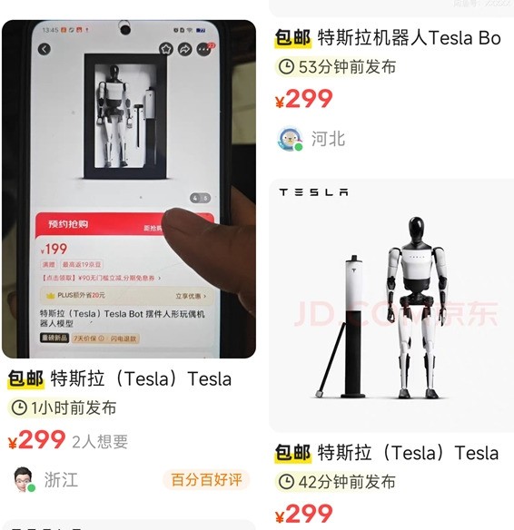 由于新品供不应求,二手交易平台闲鱼上迅速出现了大量加价出售的Tesla Bot摆件。商家们普遍将价格提高至299元,溢价已超过百元,但仍然有不少消费者愿意为此买单,以尽早获得这款独特的摆件。