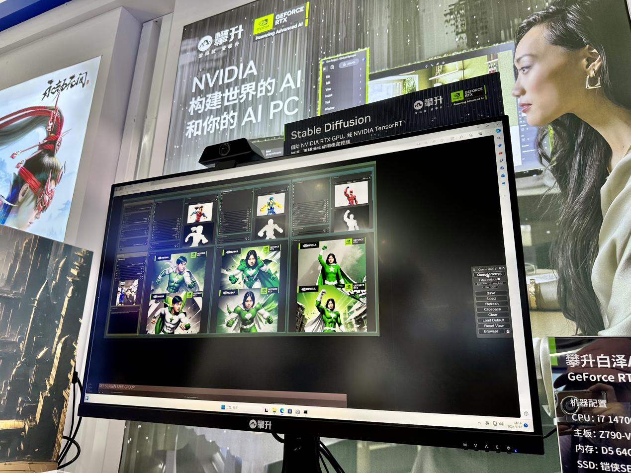 本次展会,英伟达携手合作伙伴为大家带来基于RTX加速的全新AI体验。用户可现场体验最新的ComfyUI,NVIDIA Canvas等AI应用,并借助GeForce RTX 40 系列GPU带来的强大本地AI算力,感受更高效,更自由地生成式AI创作体验。