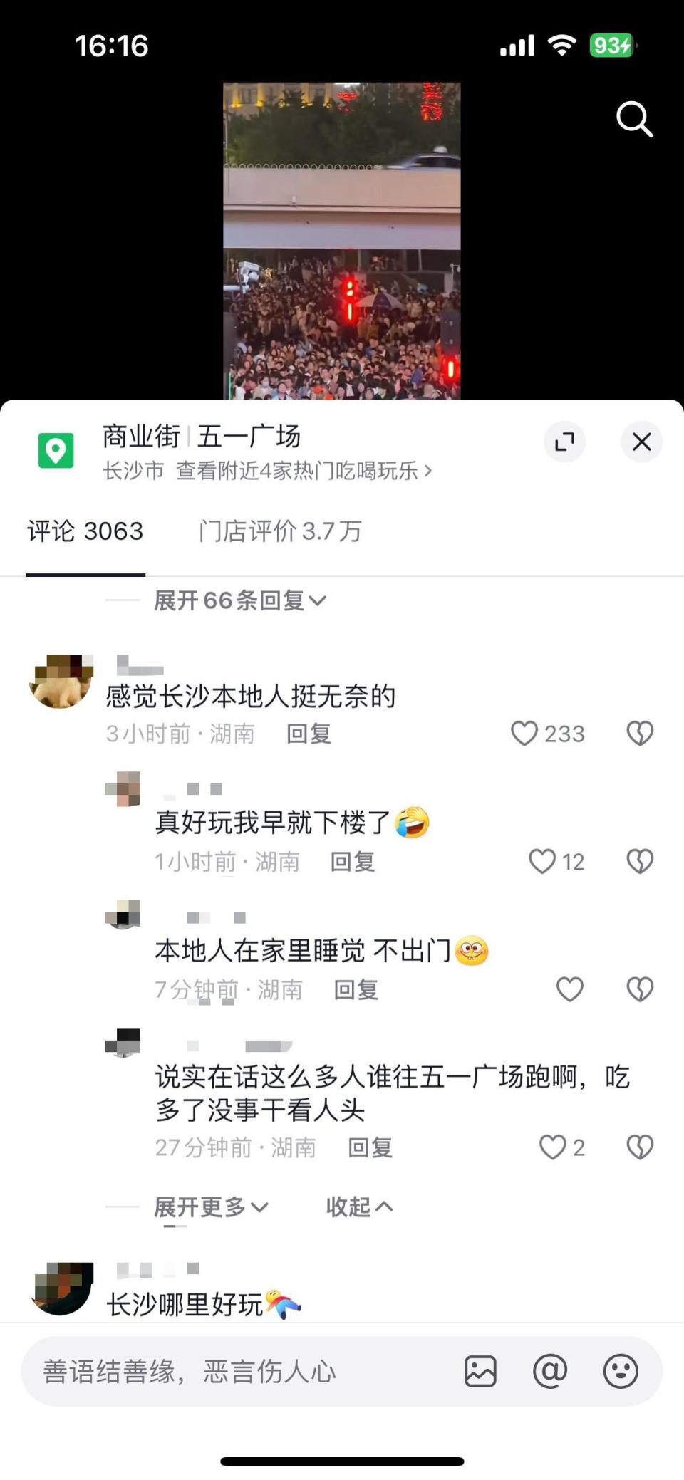 在长沙的小吴表示,本来看天气有小雨,想着人会少一些还是不信邪的去了五一广场,没想到在人群中遇到了信誓旦旦称五一不出门的朋友。
