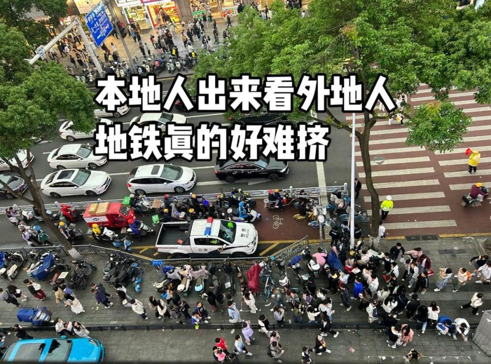 5月1日在重庆,从高处俯瞰,密密麻麻全是前来的游客,人们大呼“重庆根本没有淡季”。在南昌,除了著名景点,连珠宝街这样的普通步行街道也是人满为患。长沙更是有网友表示“多待一秒,都会窒息”深切体会到了外地游客的热情。