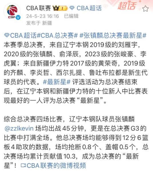 北京时间5月23日,今年CBA总决赛已经尘埃落定,辽宁总分4-0横扫新疆实现3连冠。如今CBA官宣新增奖项,25岁的张镇麟夺得今年总决赛的“最新星”,却引发舆论不小的争议。