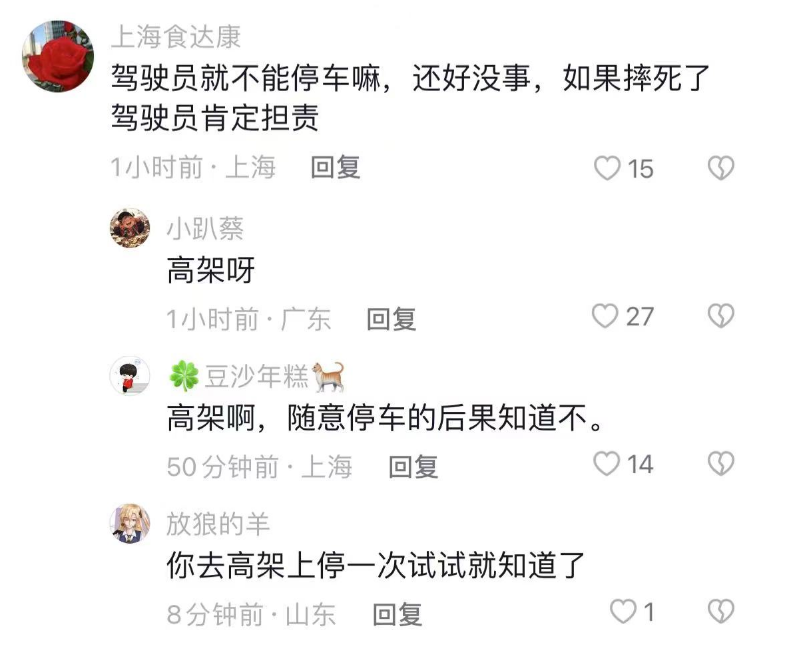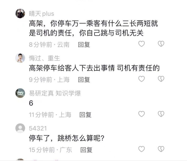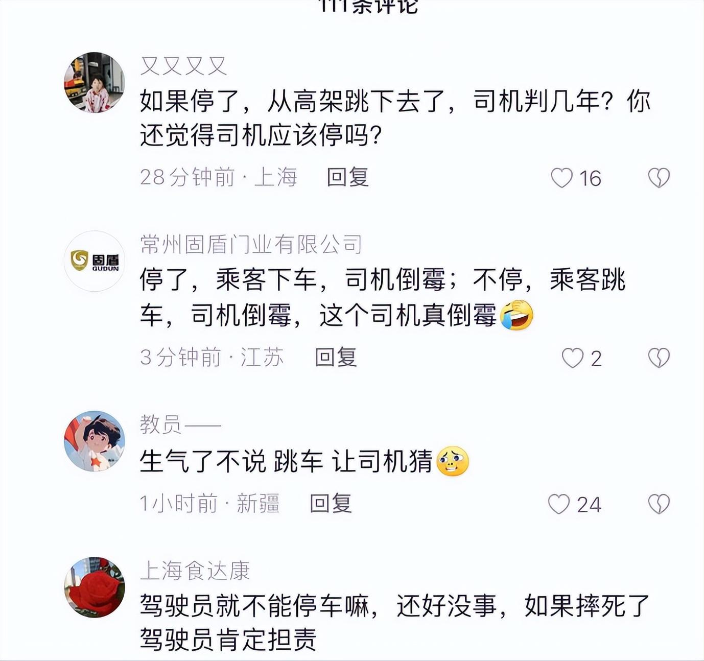 但是有一些圣母心的网友表示,为什么不能在高架上停车,既然知道了乘客要跳车,为什么不开慢一点。
