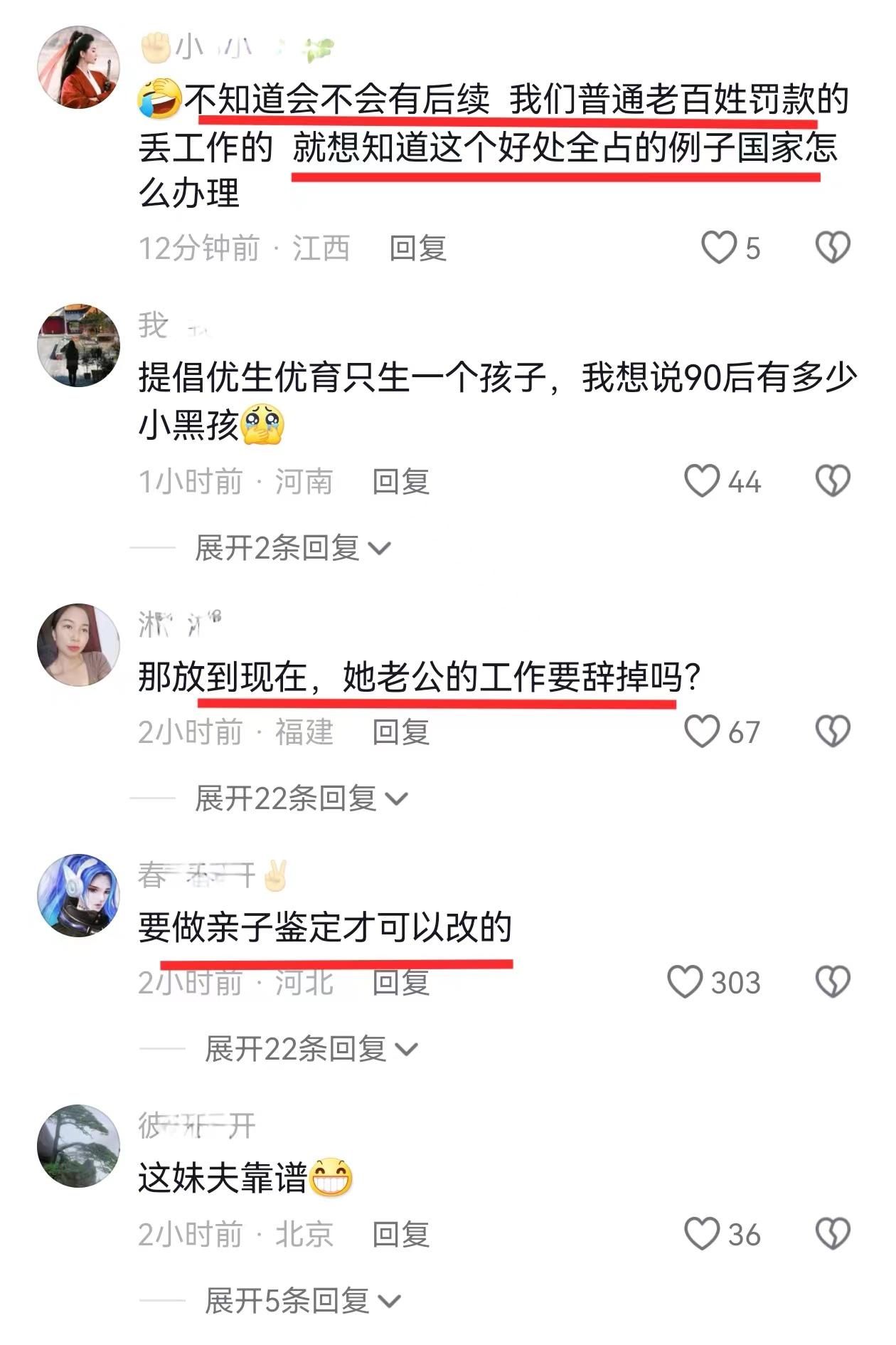 另外一方面,有网友认为,希望这件事有后续,因为在当年很多人为了多生孩子,确实丢掉了体制内的工作,而且还不在少数,而这位家长却走了捷径,现在却安然无恙,明显不公平。