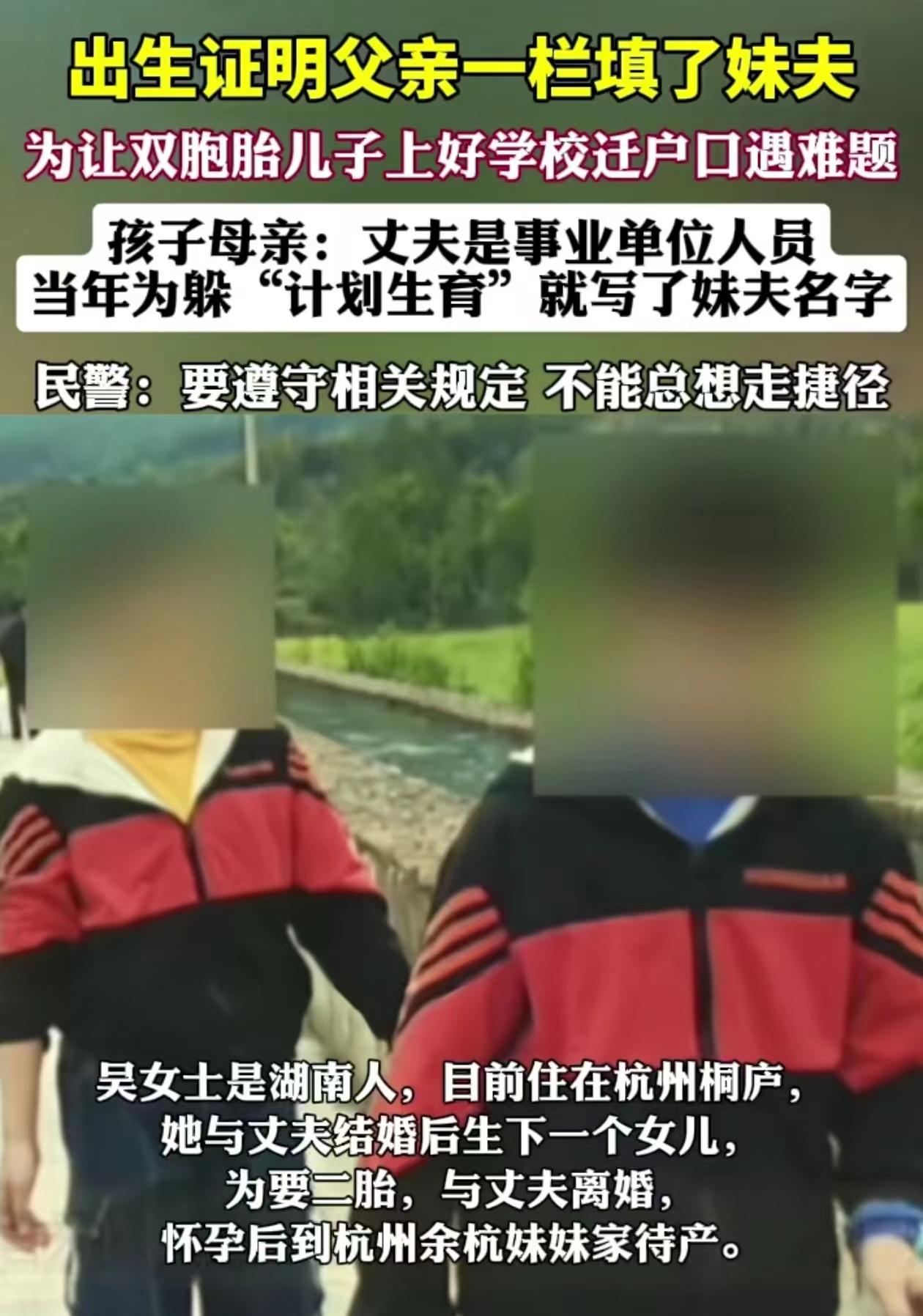 从媒体的报道来看,这位家长是湖南人,目前住在浙江杭州桐庐,当年在和丈夫结婚后生了一个女儿,但受到传统观念的影响,他们还想继续生二胎,可是丈夫是事业单位人员,在当年的计划生育政策的约束下,没法继续生二胎。