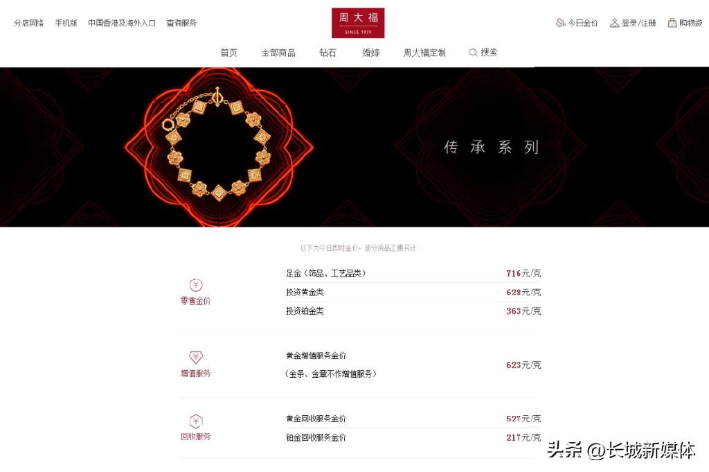 黄金价格的上涨再叠加本就不菲的门店加工费,周大福等金店的产品价格更是高不可攀。周大福官网显示,今日零售金价为716元/克。