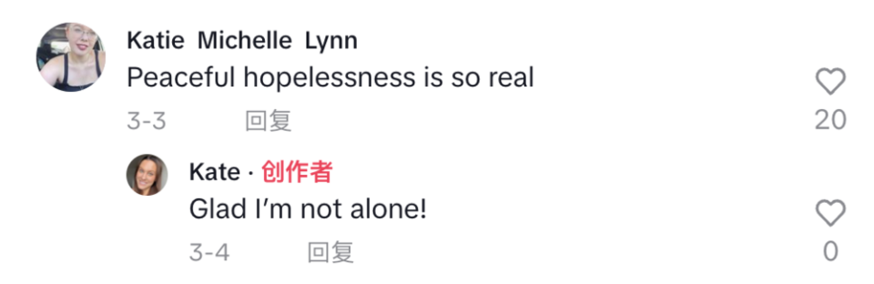 曾经她会为了漫天的账单而焦虑崩溃,现在她不会了,因为她感到“peaceful hopelessness”,只有用一种平和静谧的绝望,才能挨过这场“后资本主义时代的灾难”。评论区里的网友纷纷附和,目前在美国中下阶层,这是一种普遍性的经济困境。