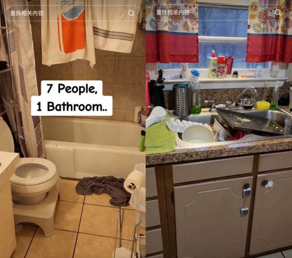 而他们7口人共用的一间卫生间,甚至还没有中上阶层家里的衣帽间大。