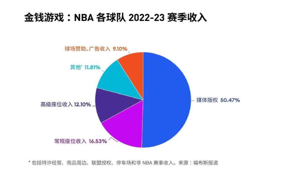 值得一提的是,NBA目前的转播合同是9年250亿,据报道,在这份合同到期之后,转播合同的价值将在500亿以上,这意味着各支球队从媒体版权的分成收益(平均分配)将大规模上涨,即便是球队在日常运营中是亏损的,也能从分成和广告等当面实现大额找补,也就是说,球队只要别弄太多的奢侈税,想不赚钱都难。