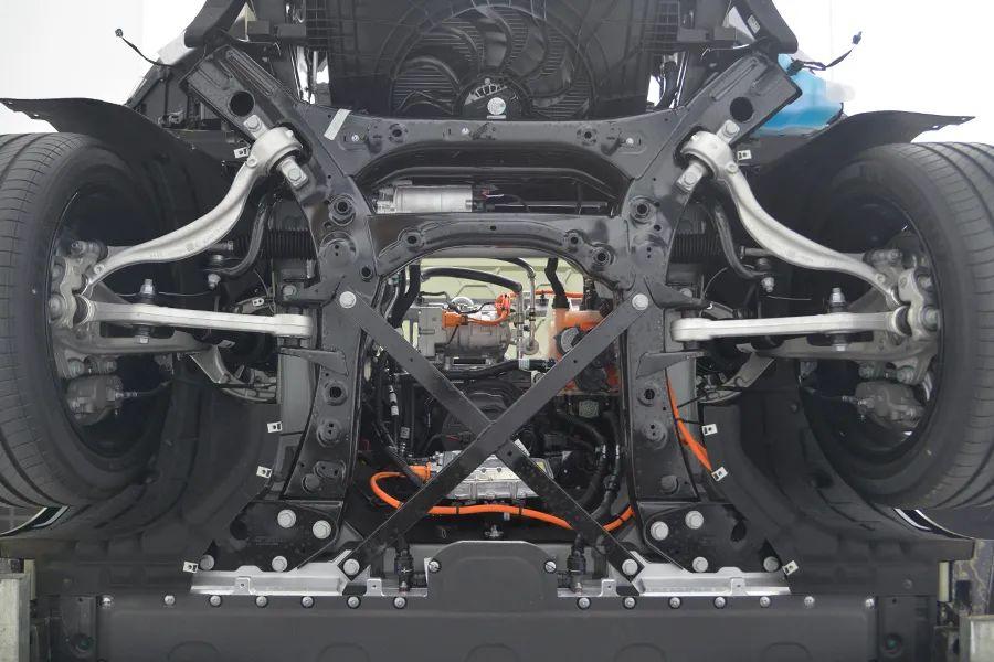 这辆车的后副车架是全框式结构,双层钢板冲压焊接而成。