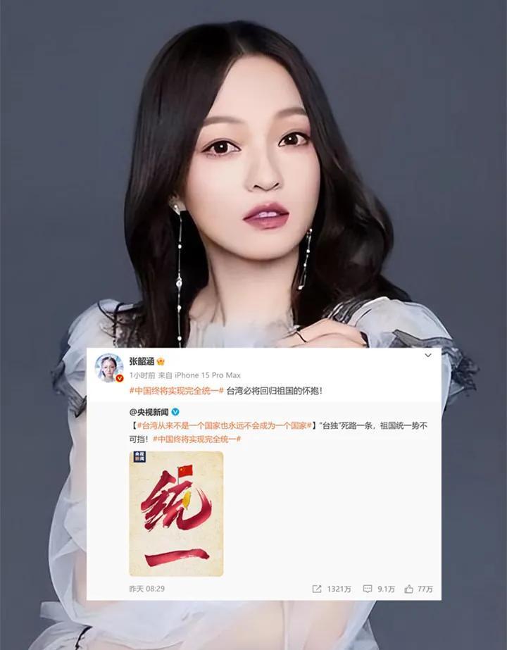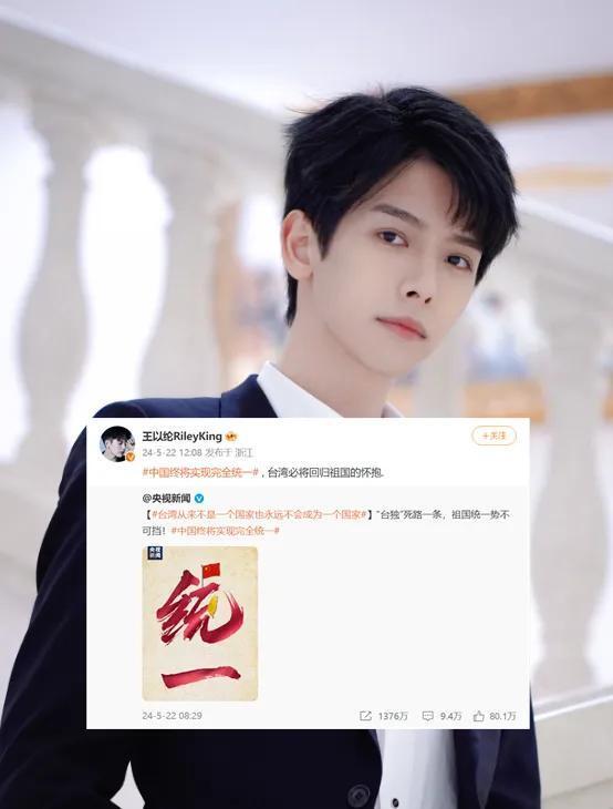 在最早一批转发支持统一的艺人中,有一大半都是刚入行的新人,他们有的是靠参加101选秀综艺出道,有的是靠大IP《流星花园》及热门短剧《我在80年代当后妈》出名。虽然人糊但是立场声明毫不含糊,比如王承渲、赖冠霖、官鸿、陈昕葳、苏袀禾等,都旗帜鲜明的表示:台湾属于中国。