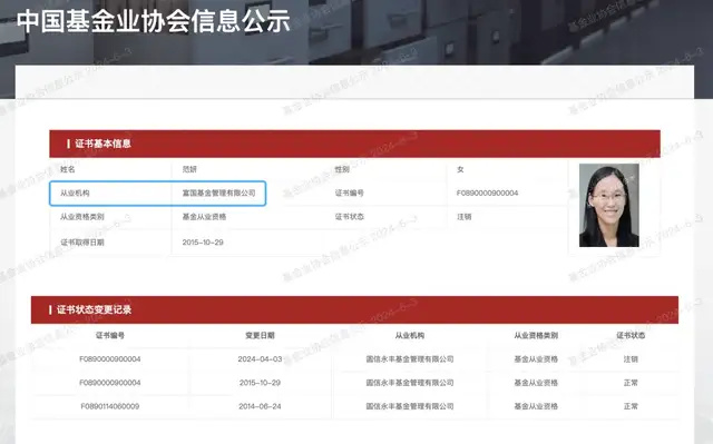 最近,因旗下基金曾买入财务造假公司ST中泰,而受到争议的富国基金,终于迎来一桩“喜事”。中基协信息显示,知名女性基金经理范妍的从业机构已经从圆信永丰变成了富国基金。