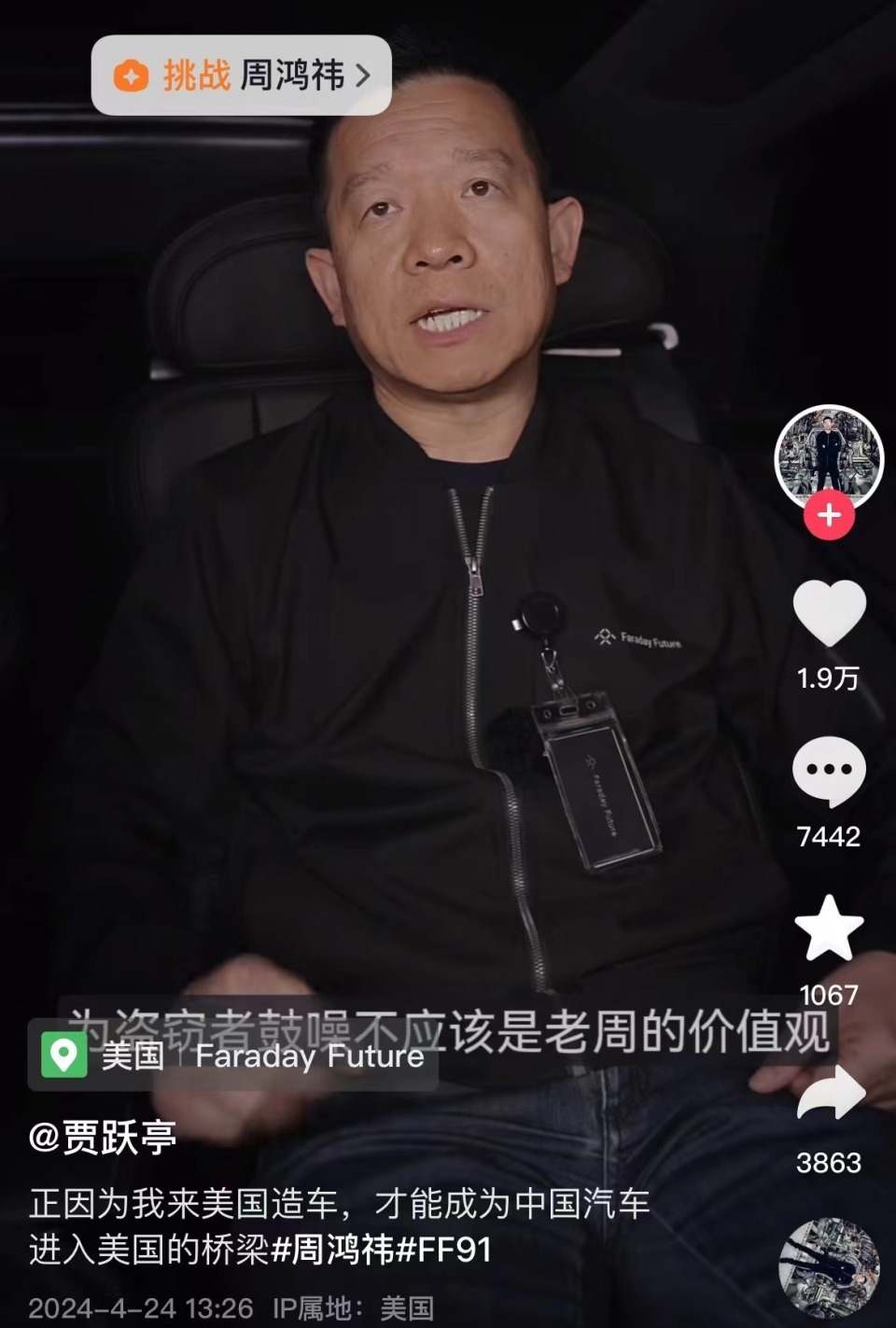 “我不是为贾会计(指贾跃亭)说话,他带着图纸到美国那么长时间也没造出几辆车,高合汽车反而造出来了,他却反过来告人家。我觉得他犯了一个错误,(特斯拉CEO)马斯克造车都要来中国设厂,他却去美国造车,完全没有搞明白中国的优势在哪里。”周鸿祎称。