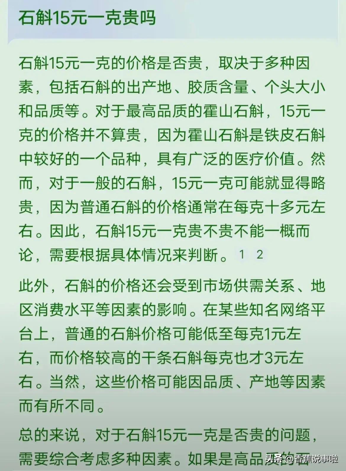 高品质石斛卖16元一克是有可能的,这也解释了为什么视频中店家说的明码标价。