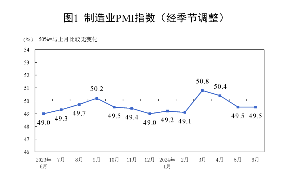 6月份,制造业PMI为49.5%,景气度与上月持平。