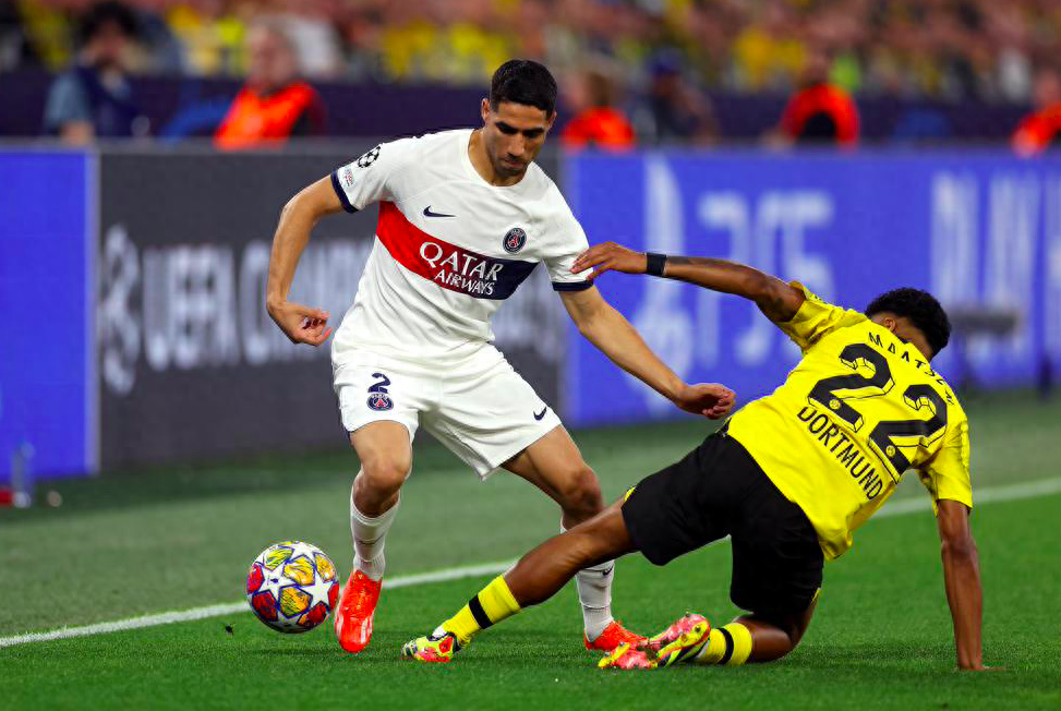 下半场开始后,巴黎圣日耳曼开启猛攻模式,不到1分钟,姆巴佩的射门击中右侧立柱,阿什拉夫的射门击中左侧立柱,多特蒙德不止逃过一劫。