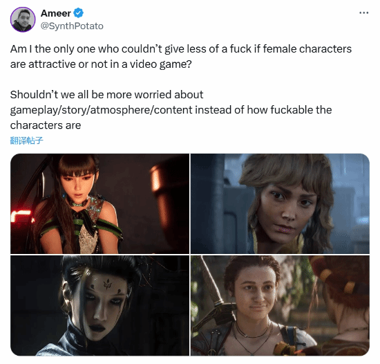 近日,一条关于电子游戏中女性角色吸引力的评论引发了网友们的热议。该网友在推文中表达了自己的观点:“我们是不是应该更关注游戏性、故事情节、氛围和内容,而不是角色有多性感?”这条推文迅速引起了大量玩家的回应和讨论。