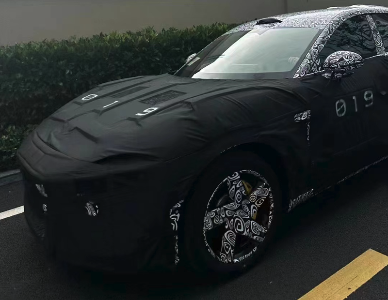 车身侧面来看,新车采用了较为个性化溜背式轿跑SUV的设计,车顶线条采用了顺滑的曲线设计,并延伸至车尾部,搭配较长的L113区域,使得整体侧面造型看上去与法拉利的Purosangue有着异曲同工之处。新车还配备了黄色的制动卡钳以及五辐式的轮圈,外后视镜上还内嵌有转向灯组。