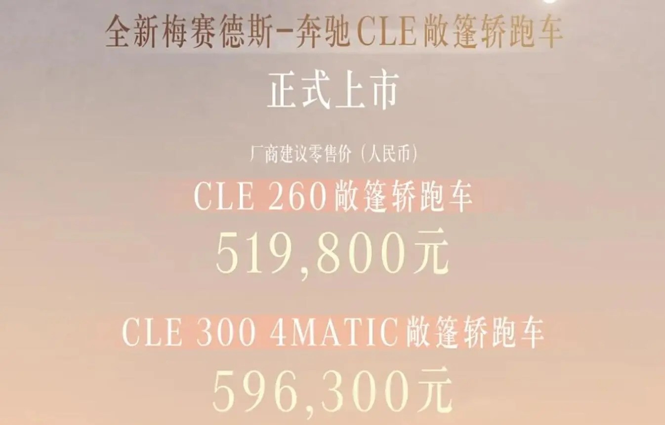 奔驰CLE敞篷版车型正式上市,售价与硬顶版本相似。新车的外观设计与硬顶版本保持一致,但价格增加4-6万元,注定市场受众较小,适合追求极致拉风的消费者。车辆的内饰设计和配置与硬顶版本相同,采用双大尺寸悬浮式液晶屏、展翼式中控台面和圆形空调出风口等元素,并提供多种撞色内饰配色和特殊质感的面板覆盖。此外,新车还配备了Aircrap自动导流系统和易进出等功能,在驾驶体验方面也有所提升。